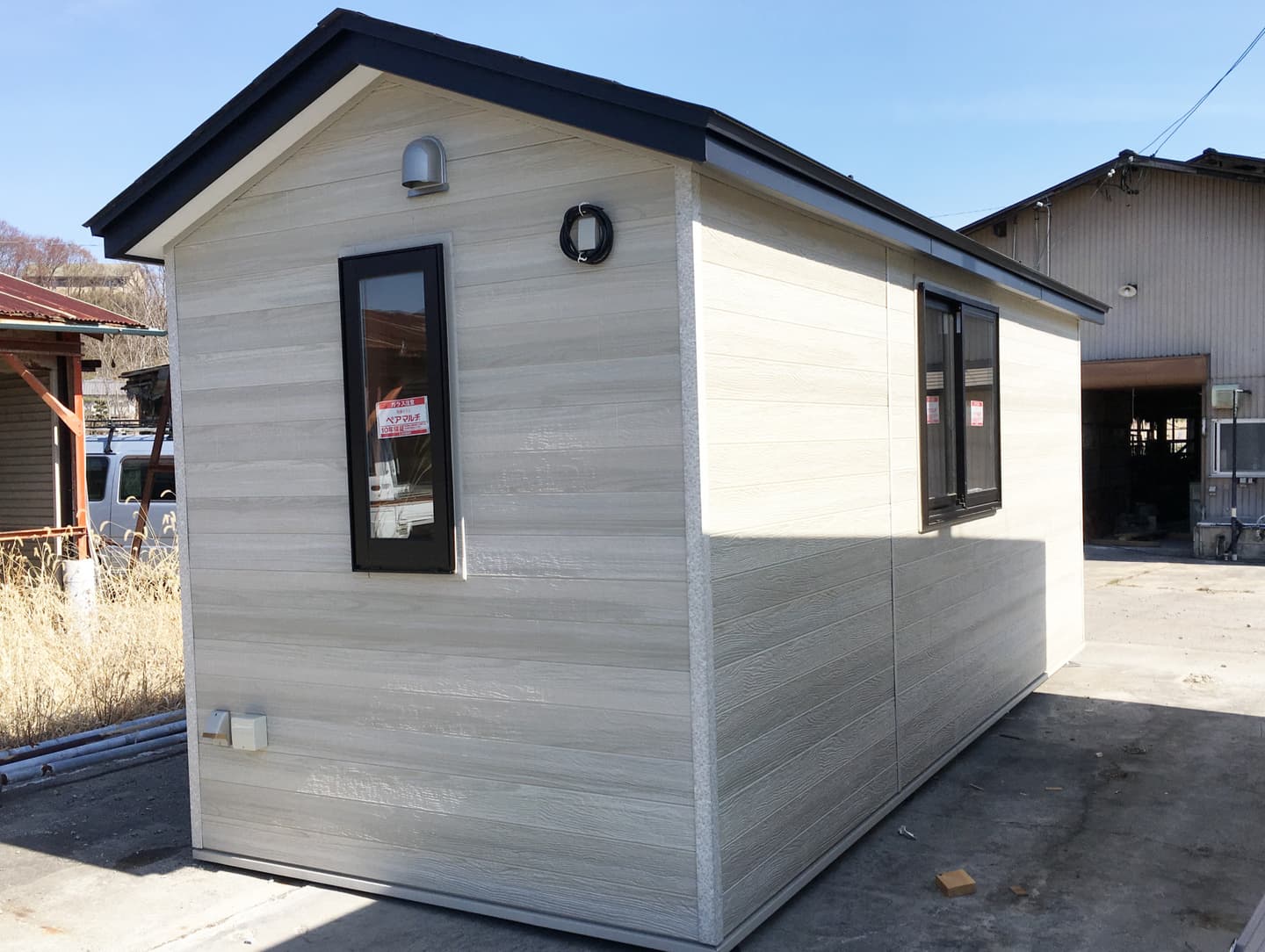 全施工のうち、なんと約8割が工場で製造されることがユニットハウスの大きな特徴です。 工場で製造された「箱型構造の建物」が設置場所にトラックで搬入され、簡易的な建て込みで完成します。 基礎工事が必要ないので、当日設置・お引き渡しが可能! 10㎡以下でしたら煩雑な建築確認も不要です! (諸条件によって建築確認の必要な場合・設置が不可能な場合が有ります。最寄りの建築行政機関又は、弊社へお気軽にご相談下さい。) あらかじめ工場で部材の製造や組み立て等を行うため工期が短く済むので、費用も注文住宅よりかなり割安になることが大きな魅力! ただし、一般木造住宅に比べて資産価値は少なくなります。 カズケン澤井が、お客様のご希望に耳を傾けたうえで、最適なユニットハウスご提案させていただきます。